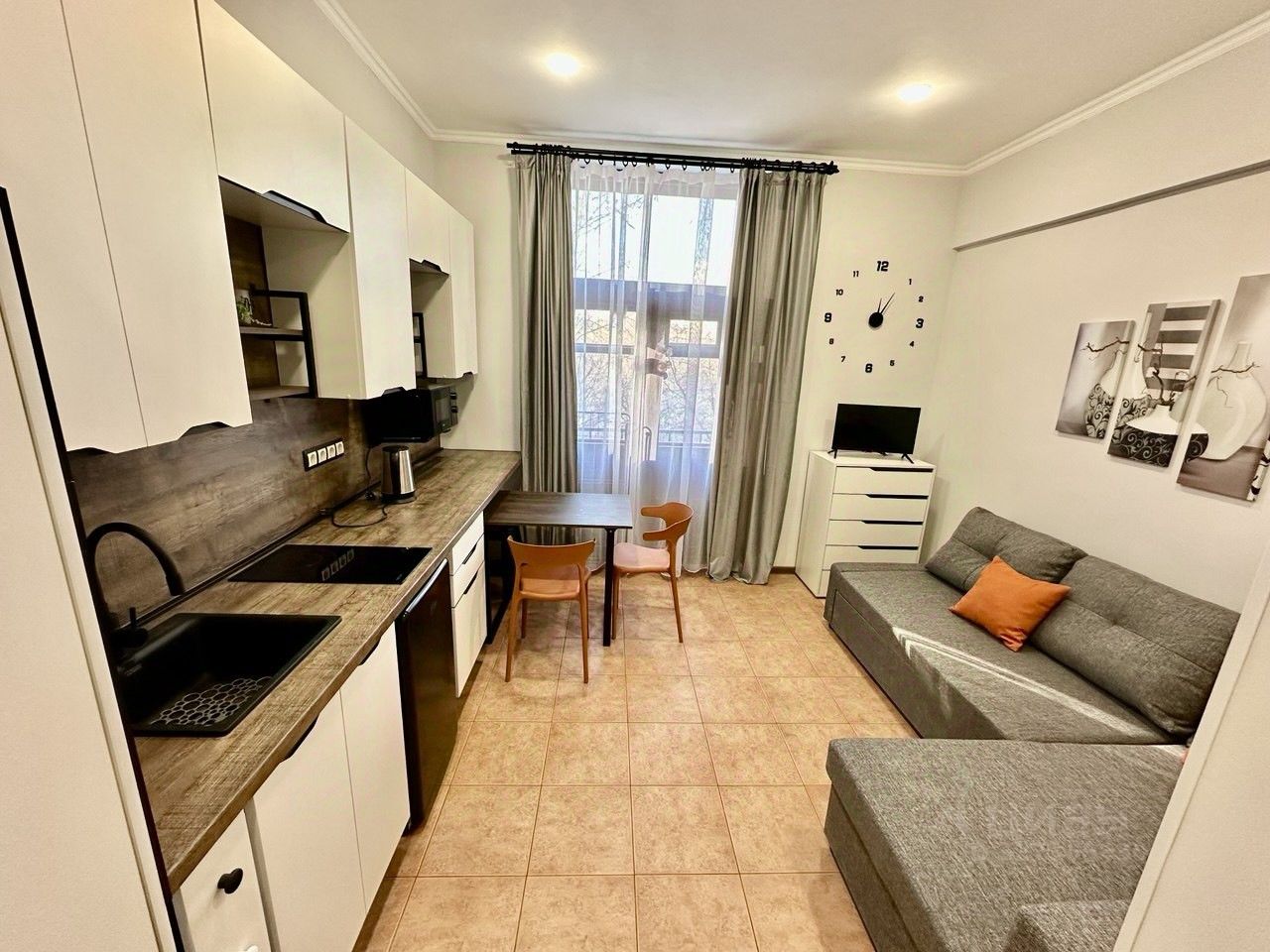 Студия после отделки, абсолютно новые мебель и техника, сдаётся впервые, никто ещё не жил.