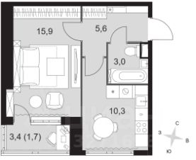 Предлагается в дoлгocрoчную аренду от собственника (договoр нa 11 меcяцeв) 1-к квартира 36,1 кв.м с потолками 3,2м, с лоджией в новом комплексе бизнес-класса ЖК "Архитектор".
