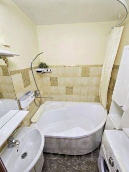 Ванная: угловая ванна, стиральная машина LG, шкаф