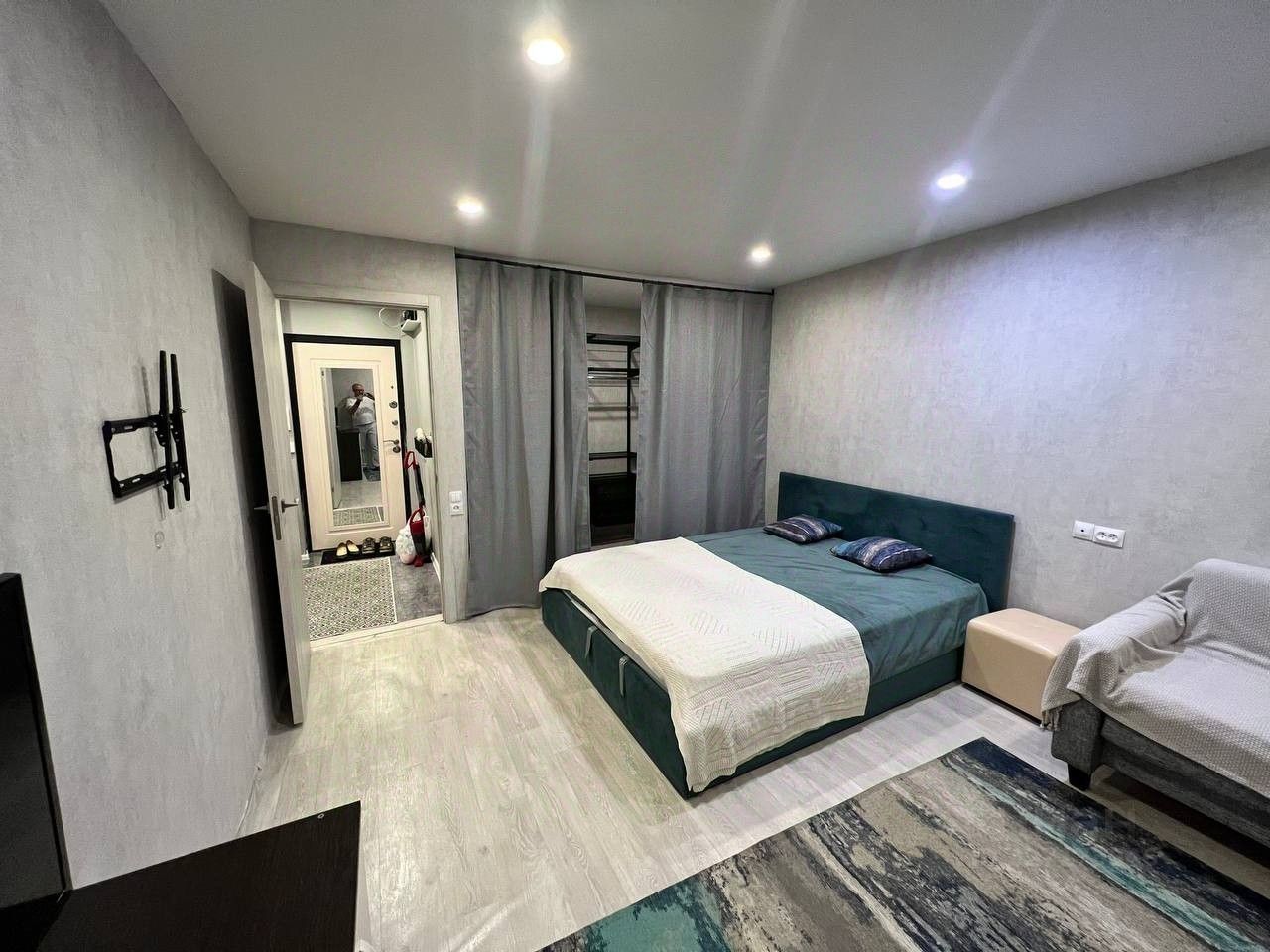 Зона отдыха — уютный диванчик, который раскладывается, создавая дополнительное спальное место.Хранение — просторная встроенная гардеробная вместит все ваши вещи.