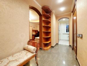 В прихожей встроенный, полноценный шкаф для одежды, зеркало+ обувница, банкетка.