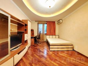 В комнате - рабочий стол, компьютерное кресло, 2х спальная кровать 160 на 200 + ортопедический матрас Орматек, вместительный испанский шкаф 6ти дверный, с достаточным размещением одежды на штангах и полках, корпусная мебель для т/в, телевизор жк, кондиционер.