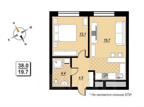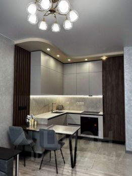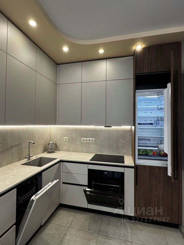 Просторная гостиная-кухня с новым кухонным гарнитуром от фирмы "Стильные Кухни" и техникой Мidеа: холодильник, вытяжка, духовой шкаф, варочная панель, чайник, измельчитель и посудомоечная машина(есть микроволновая печь). Установлена система очистки воды с обратным осмосом "Аквафор". В комнате большой диван, который раскладывается в спальное место. Также в гостиной имеется телевизор.