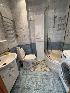В квартире сделан косметический ремонт, она полностью готова к проживанию. В комнате и на кухне есть необходимая мебель, установлены кондиционеры, холодильник и стиральная машина. Санузел совмещённый, оборудован душевой кабиной.