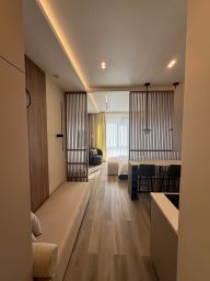 уютная студия с новым ремонтом в ЖК "Стремянный 2". Дизайнерский ремонт, продуманная планировка: кухня-гостиная, зона спальни, совмещенный санузел, прихожая, много места для хранения . Квартира полностью меблирована и оборудована всей необходимой бытовой техникой. Круглосуточная охрана . В доме есть подземный паркинг , возможна аренда машиноместа. Красивая входная группа. Великолепная транспортная доступность и развитая инфраструктура района с ресторанами , кинотеатром, торговым центром к вашим услугам.