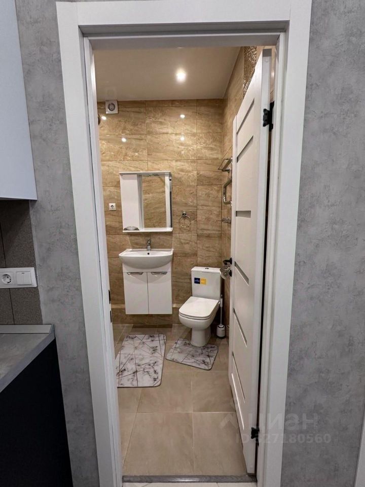 Квартира полностью готова к проживанию: в комнатах и на кухне есть вся необходимая мебель. В квартире установлен кондиционер, также в наличии холодильник, посудомоечная и стиральная машины, телевизор. Просторная ванная комната оборудована ванной. Санузел совмещённый. Есть лоджия для хранения вещей и отдыха.