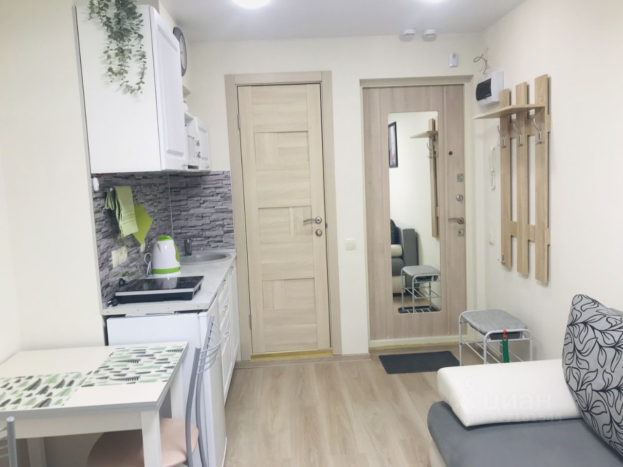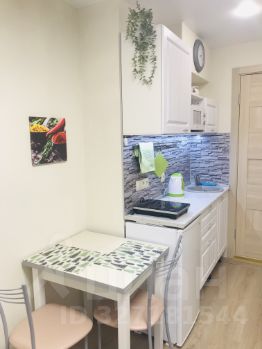 Уютная, светлая, современная студия после ремонта со всей необходимой мебелью и техникой. Небольшой размер студии - 13 кв.м - удачно компенсируется продуманностью деталей и эргономичностью пространства, тщательно выполнено функциональное зонирование. Удобный диван с ортопедическим матрасом, вместительный шкаф, кухня с техникой (небольшой холодильник с морозильной камерой, отдельно стоящая плита, микроволновая печь, чайник, посуда), столовая группа, стиральная машина.