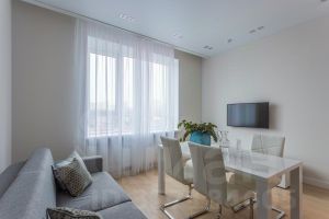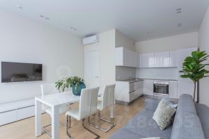 Апартамент с индивидуальным интерьерным решением в современном стиле, качественной отделкой, мебелью и техникой для жизни от ведущих брендов (Hotpoint Ariston):