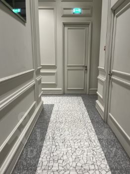 В квартире теплые полы в коридоре, санузле, на лоджии, регуляция освещения пространства с помощью димеров, шторы блэкаут.