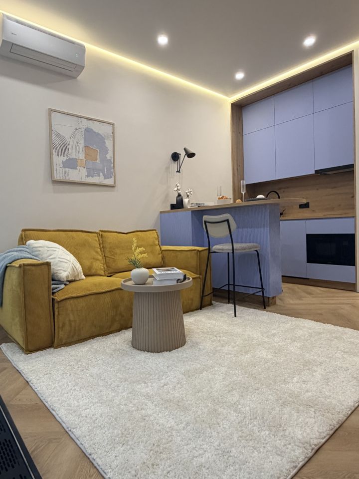 Функциональное зонирование создаёт идеальный баланс: просторная кухня-гостиная для приёма гостей и эстетичных вечеров, спальня — для полноценного отдыха и восстановления.