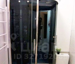 Совмещённый санузел оборудован современной душевой кабиной и мебелью для ванной комнаты.