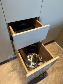 Техника: Холодильник, индукционная варочная панель (плита), СВЧ, электрочайник, посудомоечная машина, стиральная машина с функцией сушки,.