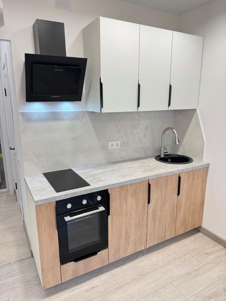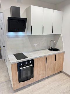 Сдаётся уютная, светлая, новая студия. Большое окно во всю стену. Есть все необходимое для комфортного проживания. Раздвижная кровать 160х200; кухня с новыми варочной панелью, духовым шкафом, вытяжкой, мойкой, обеденный и письменный стол и стулья; шкафы для хранения. Для создания комфортного климата установлен кондиционер, римские шторы, есть возможность открывать окно в откидное положение.