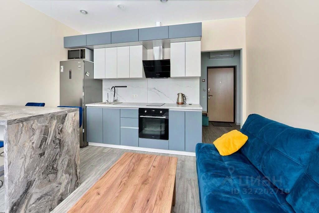 Гостинная-кухня оборудована всем необходимым , включая бытовую технику и удобный двухспальный диван, отдельная уютная спальня с удобной двухспальной кроватью и зеркалом, вместительная гардиробная, совместный санузел со стиральеой машиной. В квартире никто не жил, ремонт сделан собственником, мебель, бвтовая техника современная и качественная.
