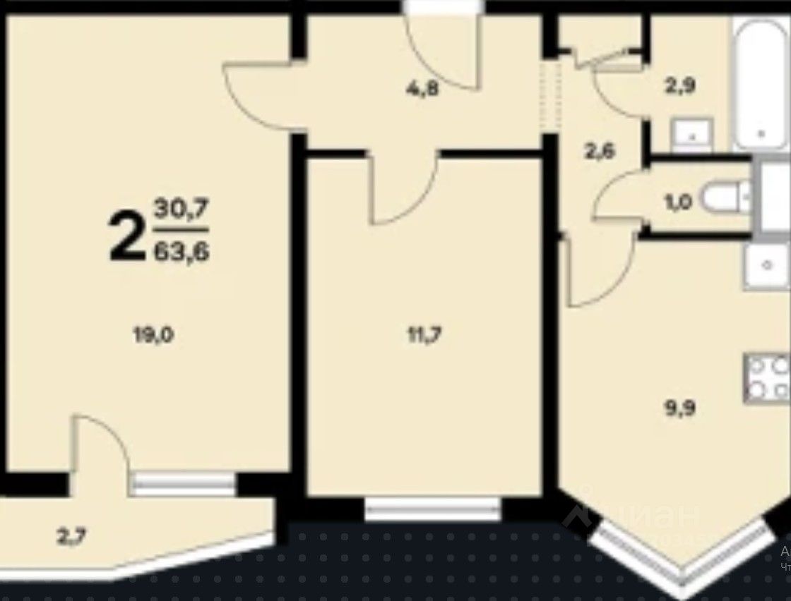 В квартире сделан косметический ремонт, поэтому она выглядит свежо и аккуратно. Планировка включает в себя просторную жилую зону площадью 30.7 кв. м. и кухню площадью 9.9 кв. м., где есть вся необходимая мебель и техника: холодильник, стиральная машина и посудомоечная машина. Ванная комната оборудована ванной, а окна выходят на улицу, что позволяет наслаждаться видом на город. Также есть лоджия для уютных вечеров на свежем воздухе.