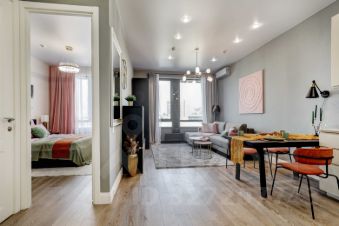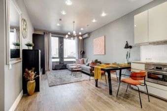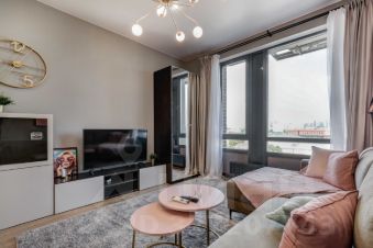 Без торга! Без домашних животных! Сдается на длительный срок просторный апартамент. Удобная планировка с кухней-гостиной, отдельной спальней. Есть все для комфортного проживания: кондиционеры, стиральная машинка, посудомоечная машина, духовой шкаф. Можно сразу заезжать и жить, есть набор посуды, постельное белье. Окна выходят на соседние жилые дома, открывается приятный вид на город. В кухне-гостиной большой обеденный стол за которым удобно так же и работать. В апартаменте два вместительных шкафа для хранения, в прихожей большой сундук для обуви и вешалка для верхней одежды.