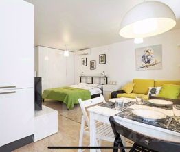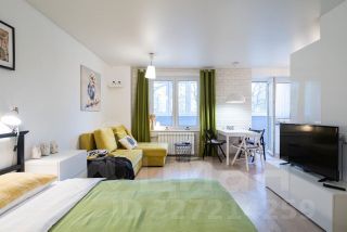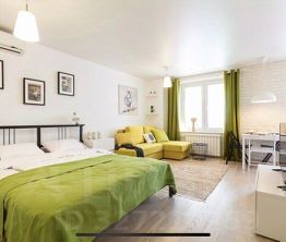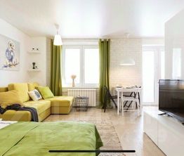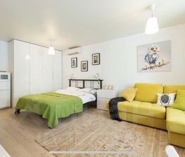 Студия — уютная, тихая и продуманная для жизни. Все необходимое для комфорта, кондиционер, стиральная машина, продуманные места для хранения, гардеробная в прихожей.