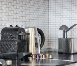 Ортопедический матрас, диван раскладывается на 1 или 2 дополнительных спальных места. Полностью оборудованная кухня, нет посудомойки.