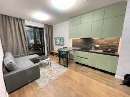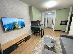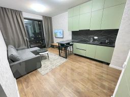 Комфортная , СОВРЕМЕННАЯ , стильная , уютная двухкомнатная квартира студийного плана . Капитальный ремонт с использованием качественных материалов . Панорамные окна в пол .