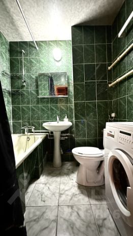 Санузел совмещённый, с ванной. Высота потолков составляет 2.64 метра, что визуально увеличивает пространство.