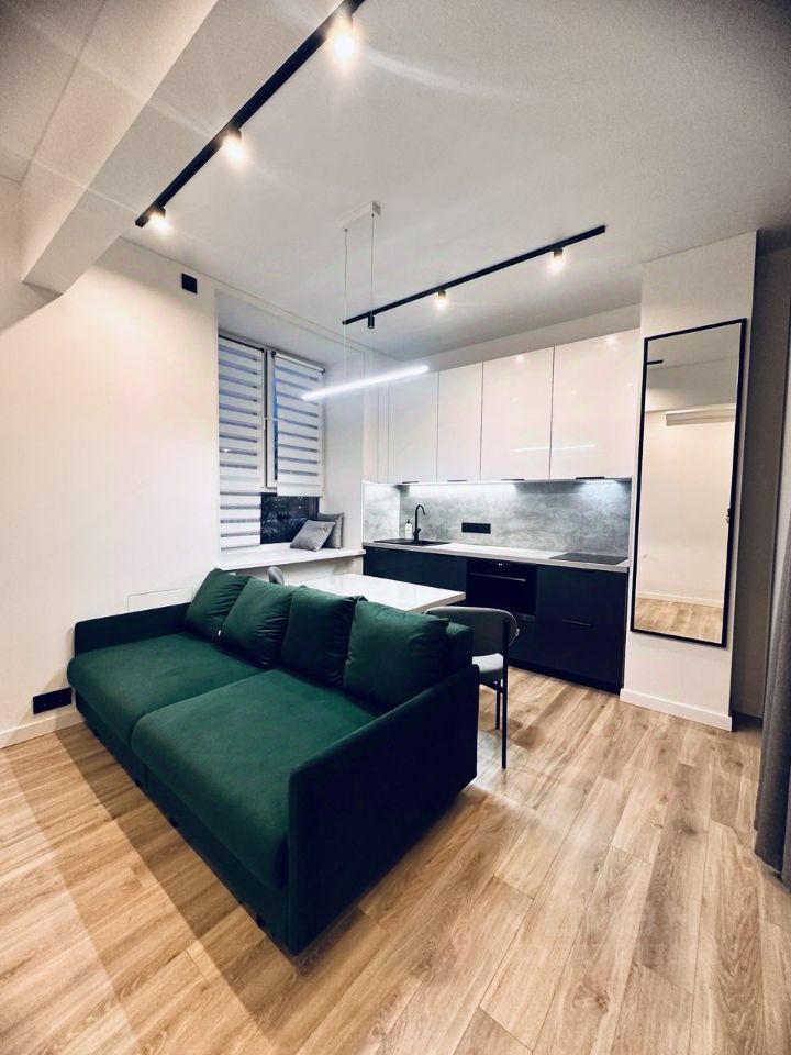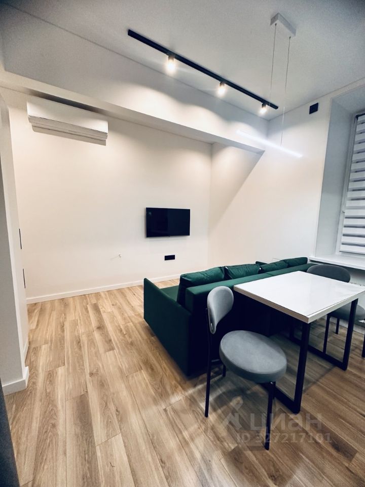 В квартире выполнен дизайнерский ремонт, что создаёт стильную и комфортную атмосферу. Кухня оборудована всей необходимой техникой: холодильник, посудомоечная машина и стиральная машина. В комнате и на кухне есть мебель, хранение. Санузел совмещённый с ванной. Также в квартире установлен кондиционер и телевизор, а окна выходят на улицу, обеспечивая хорошее естественное освещение.