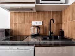 - Кухня с холодильником, плитой, микроволновкой, чайником и посудой