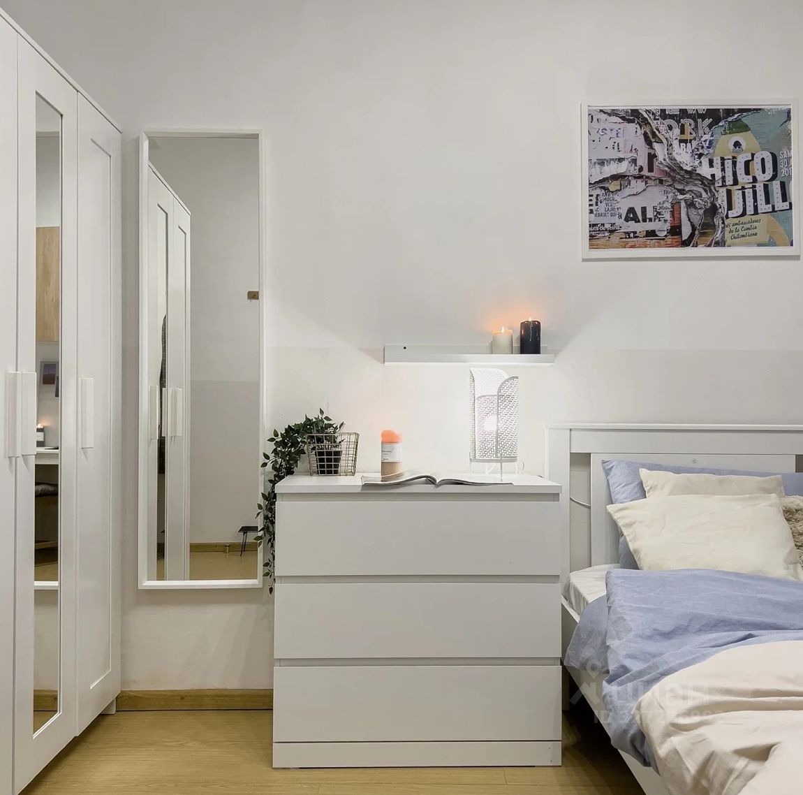 Общие зоны аккуратные и ухоженные. Входная группа оборудована стеллажом, рейлом для одежды и зеркалом в полный рост. В распоряжении жильцов — стиральная машина, гладильная доска, утюг и сушилка. Подключен Wi-Fi.
