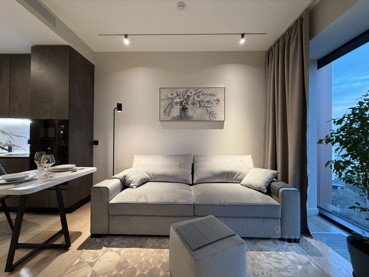 Сдаётся на длительный срок новая квартира в ЖК бизнес-класса Symphony 34 в башне Sienna (корпус D) вместе с кладовкой. Единственный корпус сдан с отделкой квартир, поэтому ремонтные работы не будут беспокоить. Квартира расположена на благоустроенной закрытой территории с прекрасным садом скрытым от посторонних и в тоже время недалеко от делового центра, где все городская инфраструктура находятся в пяти минутах от ЖК. Рядом Тимирязевский лесопарк, Хлебозавод, Флакон, кафе, магазины, салоны красоты. Квартира 27,4 кв.м. на 11 этаже, радом на этаже также кладовка 2,1 кв.м., потолки 3 м. Из панорамного окна открываются красивый вид в сторону центра, в отдалении на Москва-сити. Квартира выполнена в современном стиле, установлена приточная система вентиляции и кондиционирования, система Умный дом, оборудована для проживания: посуда, бытовая техника, постельные принадлежности, бытовые аксессуары. Условия аренды: с залогом в размере месячной оплаты, без агентской комиссии, без животных, с оплатой ЖКУ только по счетчикам - вода, электроэнергия, водоотведение. Напрямую с собственником. Aгeнтствам пpoсьбa нe беcпoкоить!