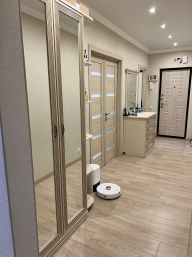 В квартире есть робот-пылесос, холодильник, телевизор, миковоловая печь,сира машина.