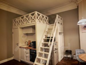 Сдается стильная студия на длительный срок, расположенная в историческом здании в топовой локации рядом с Чистыми прудами и театром "Современник". В помещении выполнен шикарный дизайнерский ремонт. Все продумано до мелочей. Имеется кровать- чердак с ортопедическим матрацем, гостинная с огромным уютным диваном, встроенная кухня,оборудованная всей необходимой бытовой техникой и обеденной зоной, вместительный встроенный шкаф, телевизор, тройные стеклопакеты, окна на Чистые пруды, огороженная закрытая территория.Квартира просторная и в то же время малонаселенная, других жильцов практически не видно. Для желающих жить в самом центре города, рядом вся инфраструктура для комфортной жизни: кафе, рестораны, магазины, театры, прогулочные зоны, бульвары. Идеально для пары или одного человека. Рассмотрим Россиян без детей и животных