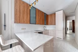 Квартира полностью меблирована (кухонный гарнитур фирмы Мария, мягкая мебель, спальный гарнитур, шкафы и другие места хранения) и оборудована современной бытовой техникой от ведущих европейских производителей (холодильник, духовой шкаф, микроволновая печь, посудомоечная машина, индукционная варочная панель, стиральная машина с сушкой всё производства Gorenje, вытяжка, винный шкаф), установлены кондиционеры Energolux, сделаны теплые полы.