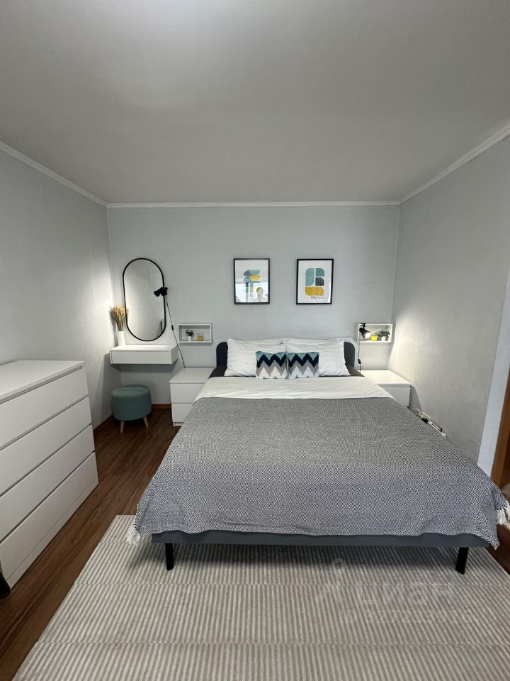 В квартире продуманное зонирование, вся мебель и бытовая техника новые. Много мест для хранения. Двуспальная кровать и раскладной диван . Кондиционер, фильтр очистки питьевой воды. Спальные принадлежности и постельное белье. Полный набор посуды. Весь инвентарь и техника для стирки и уборки.