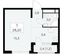 15,3 м²