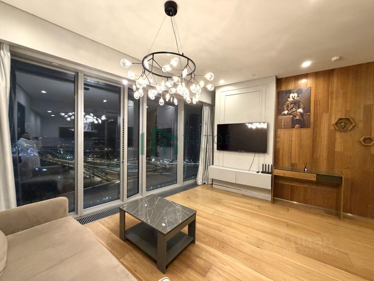 Светлая квартира с дизайнерским ремонтом и панорамными окнами "в пол".