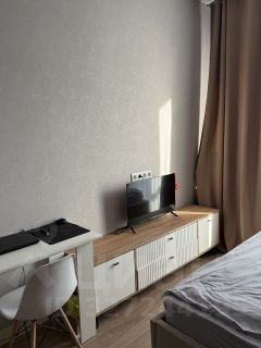 Сдаётся квартира- студия с евроремонтом в ЖК Вереск. Квартира оборудована кухонным гарнитуром, мебелью и бытовой техникой. Установлен кондиционер, есть холодильник, стиральная и посудомоечная машина, варочная панель, духовой шкаф, микроволновая печь.Полы ламинат и плитка. Окна выходят во двор,установлен шлагбаум.