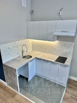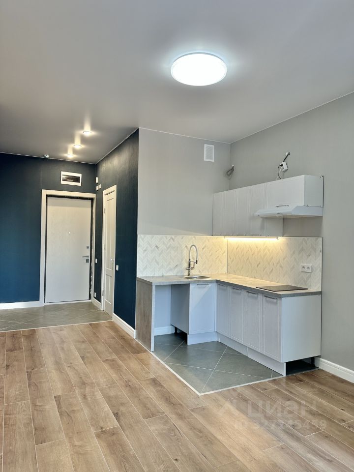 Студия расположена в новом доме. Выполнен свежий качественный ремонт, всё чисто, аккуратно и готово к заселению.