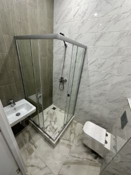 Кухня: новый кухонный гарнитур, встроенная варочная поверхность и мощная вытяжка. Есть место для посудомоечной машины. Смеситель с фильтром питьевой воды.