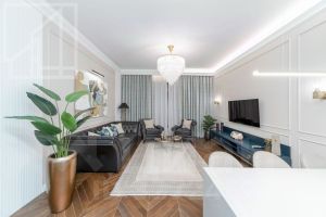 Дизайнерский ремонт выполнен в современном стиле: две шикарные спальни, мастер-комната с балконом с видом на МГУ и Лужники, гардеробные (мастер-спальня 2 гардеробные, 2-я спальня с собственной гардеробной, большая гардеробная в прихожей) и два санузла с душевыми кабинами делают эту квартиру еще более привлекательной. Потолки 3.3м. Квартира полностью меблирована и оснащена всей необходимой техникой для комфортного проживания.