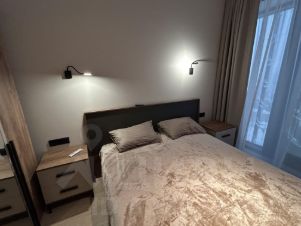 Оснащение: кровать с ортопедическим матрасом, раскладной диван, ТВ LG 65 (2025), оптический интернет МТС, рабочее место, умные карнизы, фен, утюг, моющий пылесос.