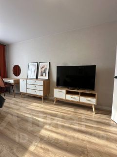 В зоне гостиной новый раскладывающийся диван, телевизор, тумба