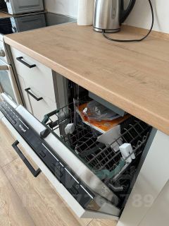 Кухня оборудована необходимой техникой: плита, холодильник, микроволновка, посудомоечная машина, телевизор