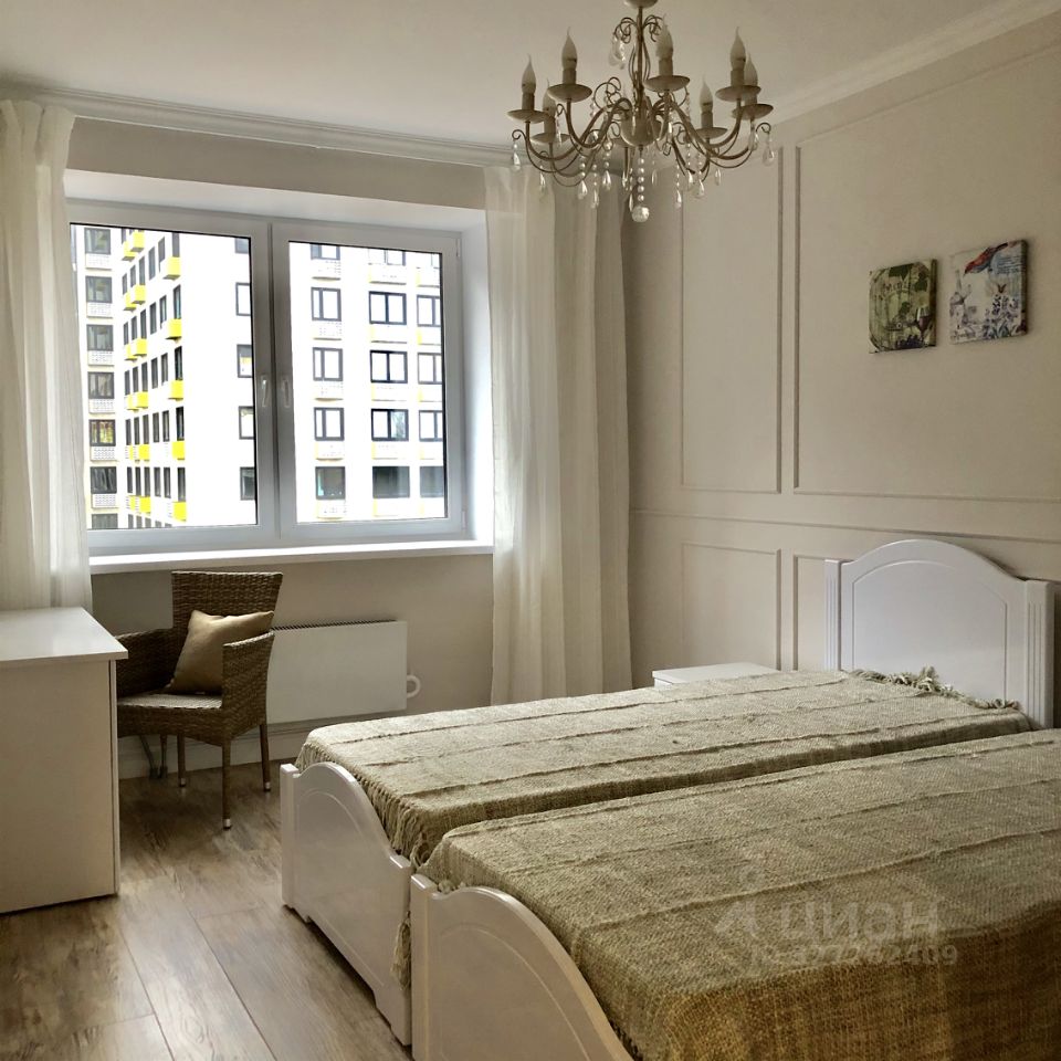 Сделан стильный ремонт в классическом стиле. В квартире есть все удобства: быстрый wifi, ТВ, стиральная машинка, холодильник, СВЧ и т. д. В комнате - две 1.5-спальные кровати, которые при необходимости можно сдвинуть, две прикроватные тумбы, стол рабочий с удобным мягким креслом. Для поддержания порядка и удобного хранения предусмотрена большая гардеробная. Вся мебель новая. Окна во двор без машин, застекленная лоджия. В комплексе есть подземная платная парковка, около метро в 5 минутах ходьбы также парковка, спортивные площадки, магазины.