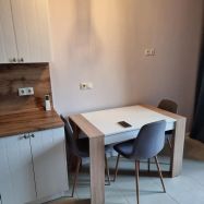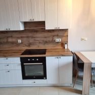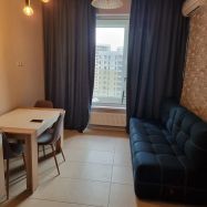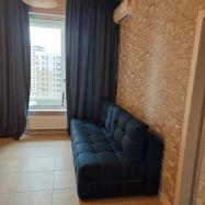 В квартире сделан евроремонт, поэтому она выглядит современно и привлекательно. Светлые комнаты обставлены необходимой мебелью, есть всё для комфортного проживания. На кухне также есть мебель и вся необходимая техника: кондиционер, холодильник и стиральная машина. Санузел совмещённый, с душевой кабиной. Окна выходят во двор, поэтому в квартире тихо и уютно.