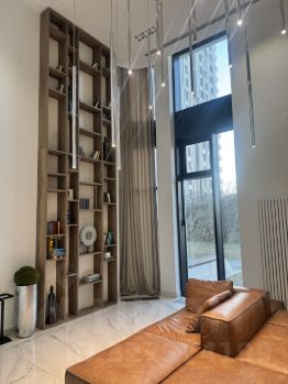 • Высокие потолки, панорамные окна, камин, много систем хранения.