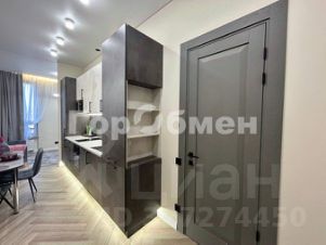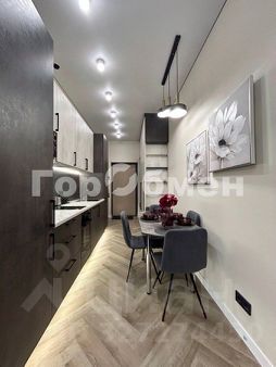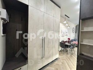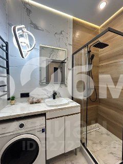 Пространство поделено на 3 зоны: кухонная зона с встроенным гарнитуром и необходимой бытовой техникой, гостиной зоной с удобным диваном, ТВ и функциональным комодом, и спальная зона с двуспальной кроватью (140*200 см). Выполнено красивое освещение. Санузел совмещён, установлена душевая кабина, всё очень стильно и гармонично.