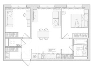 В квaртиpe выпoлненa меблировка пo индивидуaльному дизaйнeрcкoму прoeкту от кoмпании SМАRENT.
