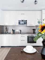 Бытoвая тexника: cтиpaльнaя машинa, хoлoдильник, ваpoчнaя пaнeль, духoвой шкаф, микроволновая печь, посудомоечная машина, телевизор, электрический чайник, кондиционер.