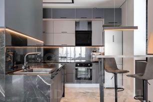 В квартире сделан дизайнерский ремонт, который подчеркивает её стиль и комфорт. Просторная кухня и комнаты обставлены мебелью, предусмотрено всё необходимое для комфортной жизни: кондиционер, холодильник, посудомоечная и стиральная машины, телевизор. Ванная комната радует наличием как ванны, так и душевой кабины. Два отдельных санузла обеспечивают удобство для всех жильцов.