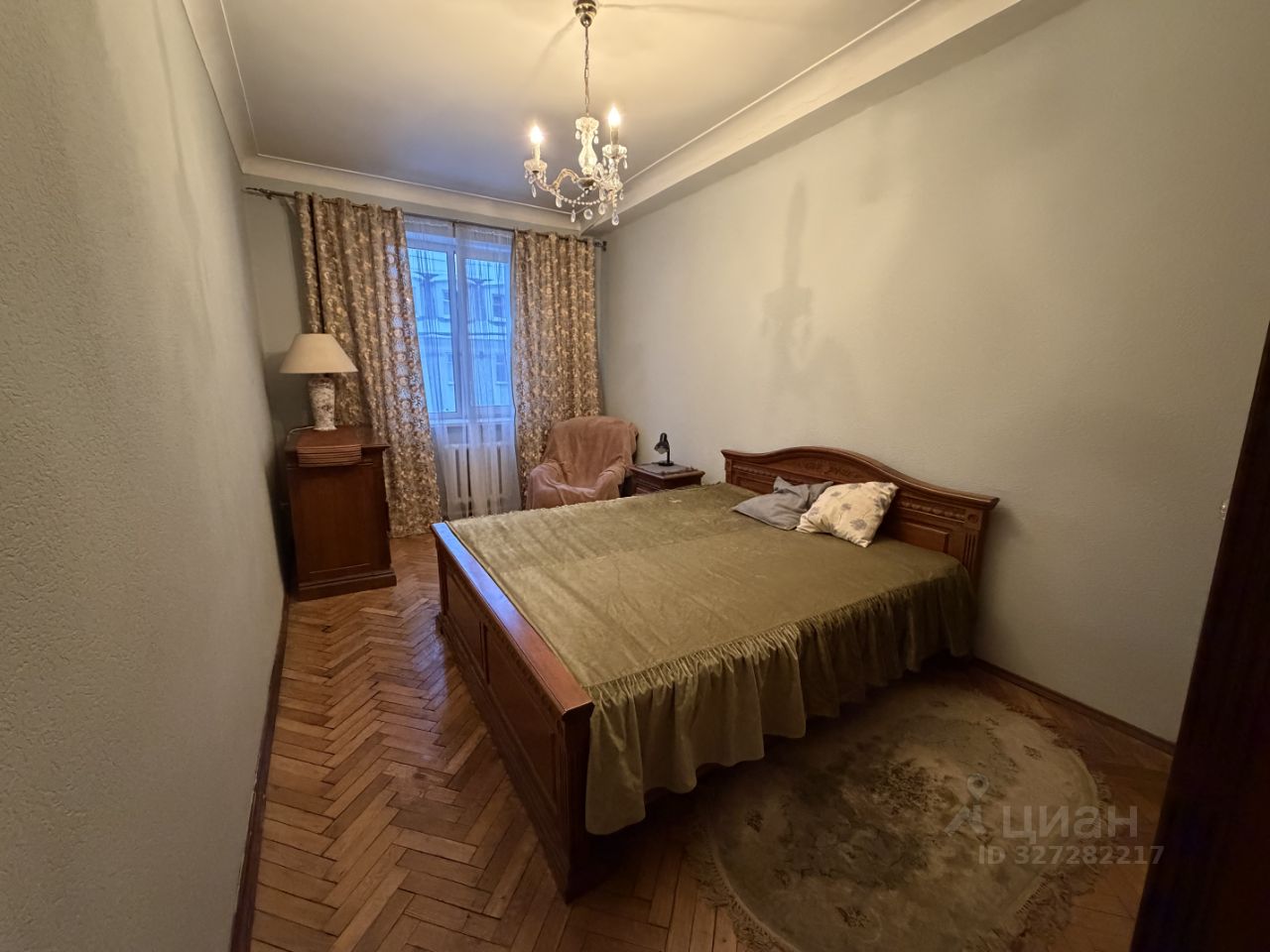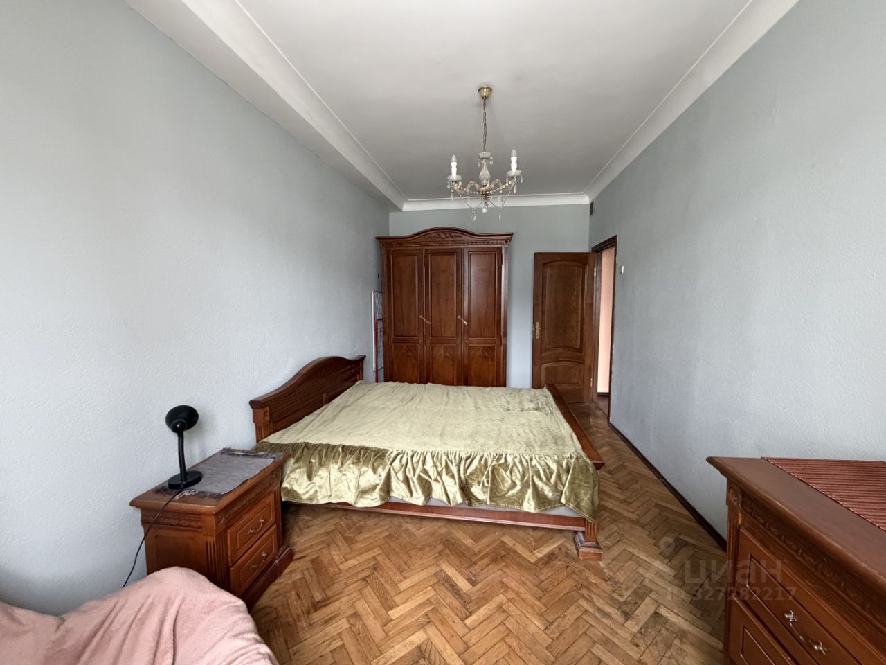 В комнате итальянская мебель: кровать, большой шкаф, кресло, комод, окна во двор, закрывается на ключ.