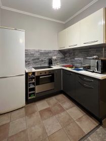 Из мебели: 2х местная кровать 180х200 с ортопедическим матрасом, раскладной 2х местный диван (доп. спальное место), 2 больших шкафа-купе, 2 комода, письменный стол, обеденный стол (раскладной) со стульями. Техника на кухне: холодильник, чайник, свч, блендер, электрическая плита. Оборудована отдельная постирочная комната и небольшая гардеробная при входе. В санузле совмещённого типа установлена необходимая сантехника.